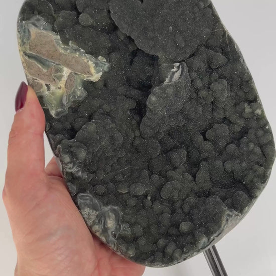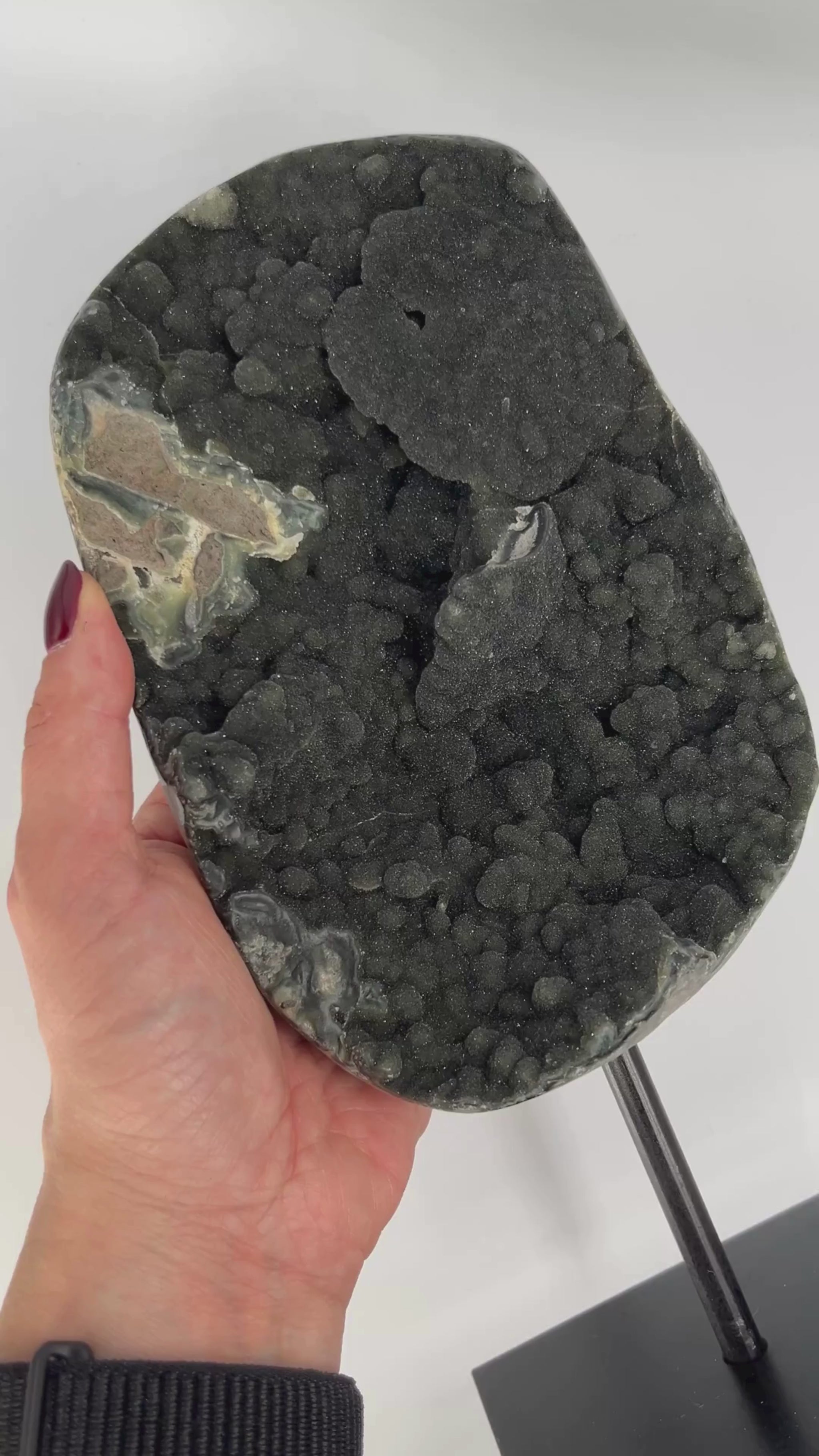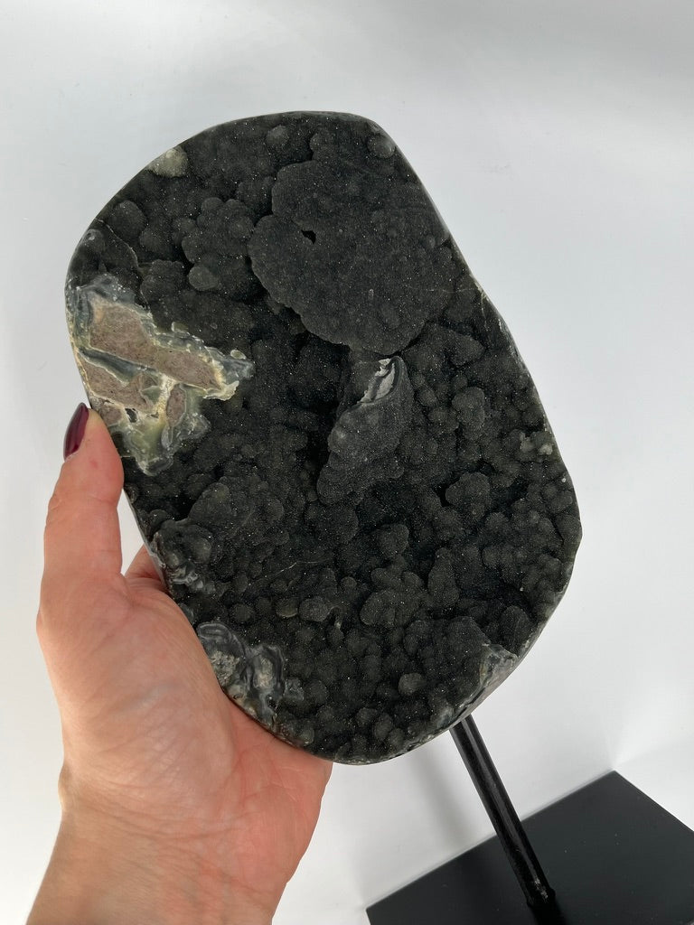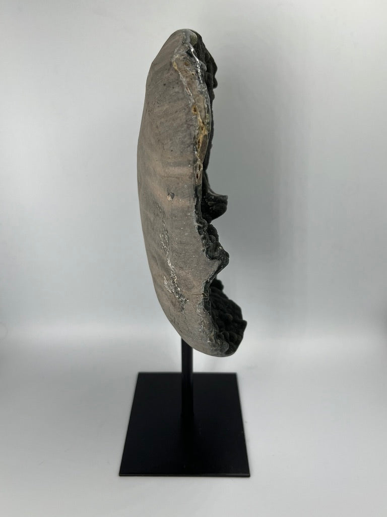 Ametyst Black Galaxy na czarnym standzie – zmysłowy i elegancki, jak kawałek kosmosu zamknięty w kamieniu 🖤
