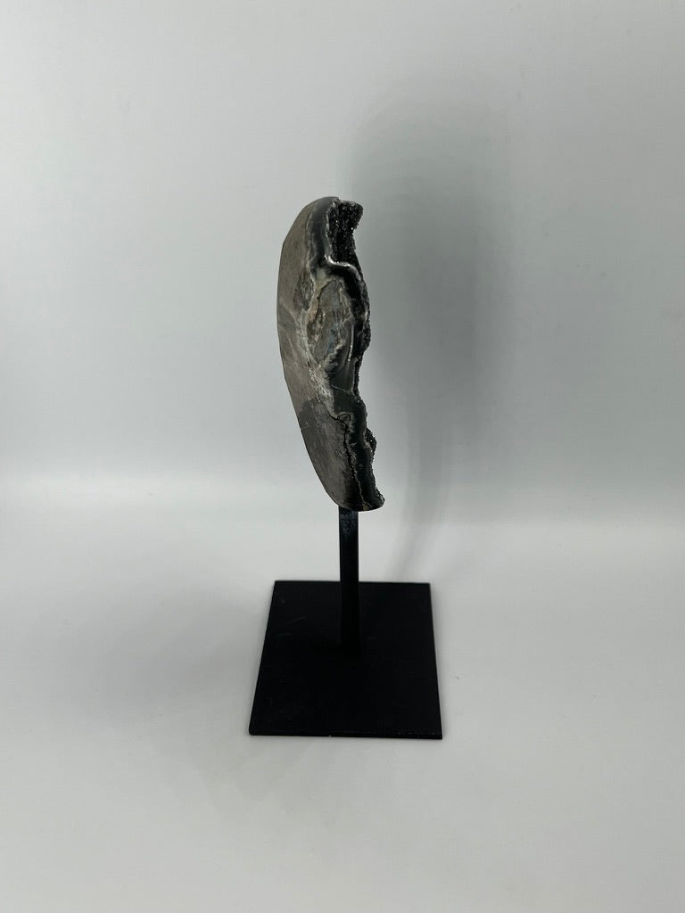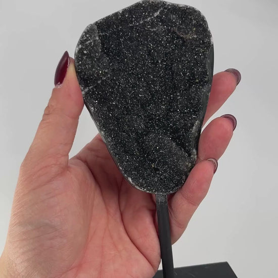 Ametyst Black Galaxy na czarnym standzie – kompaktowy, zmysłowy i hipnotyzujący, idealny do każdego wnętrza 🖤