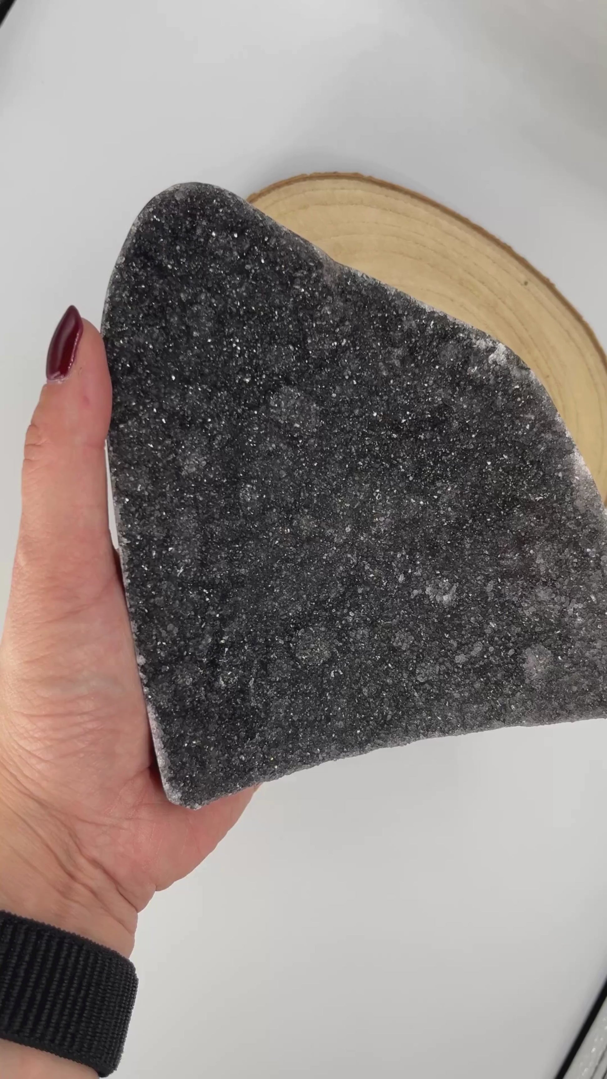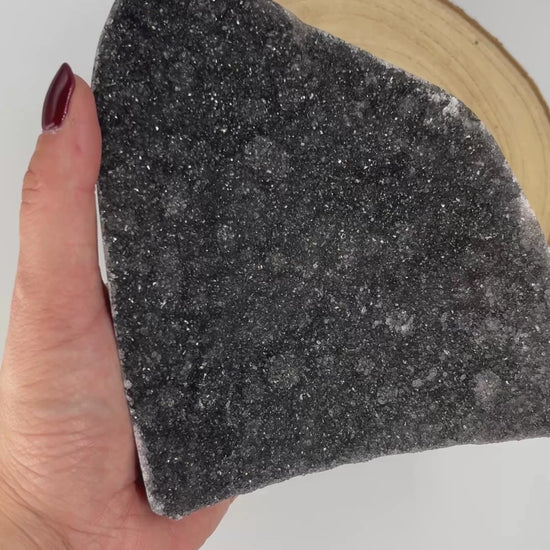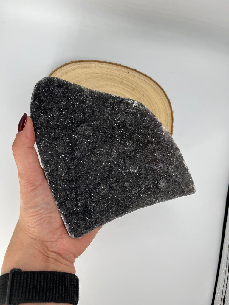 Stojący ametyst Black Galaxy w głębokim, grafitowym odcieniu – elegancki i zmysłowy, jak nocne niebo tuż przed burzą. Pełen mocy i tajemniczego blasku 🖤