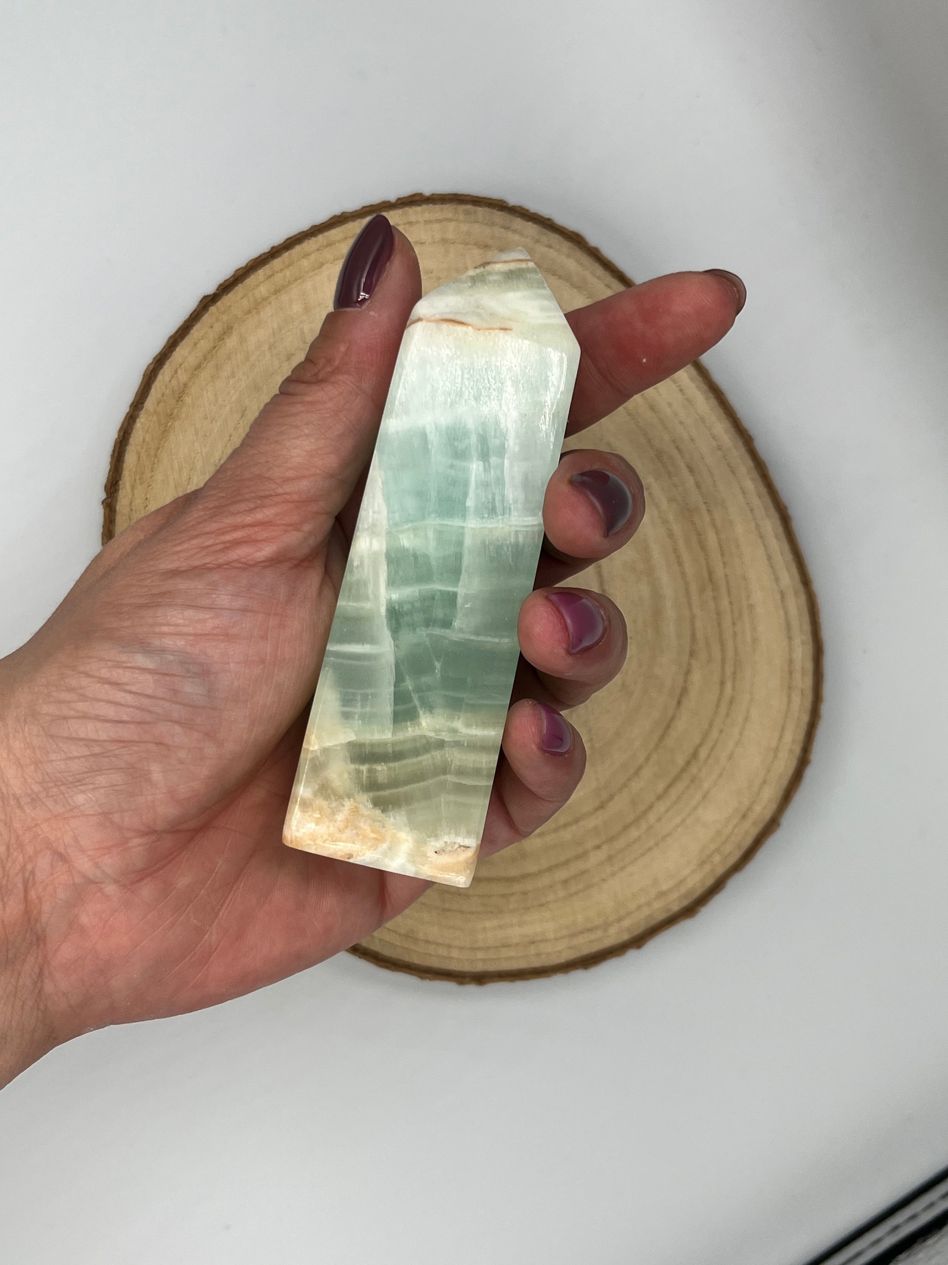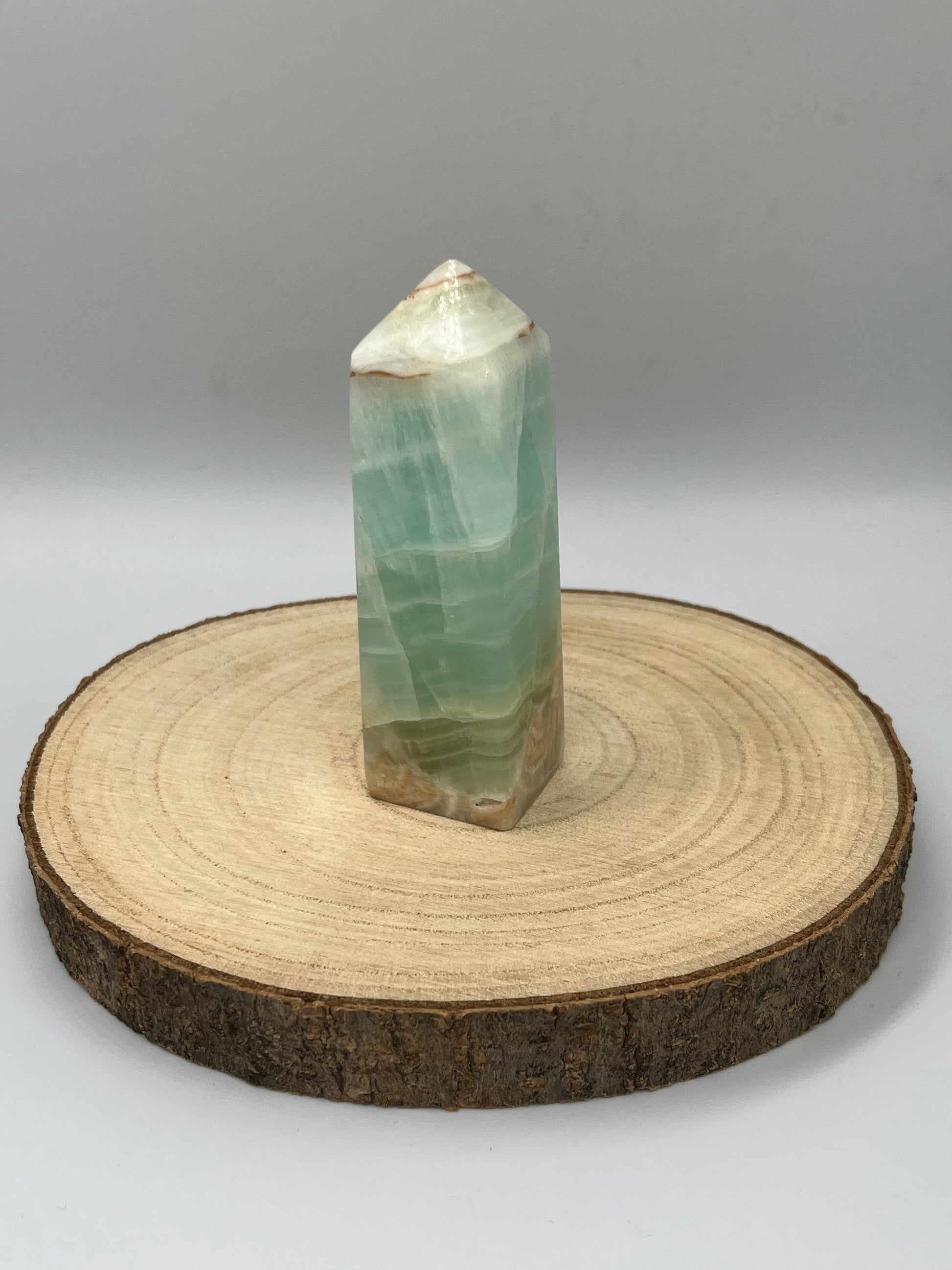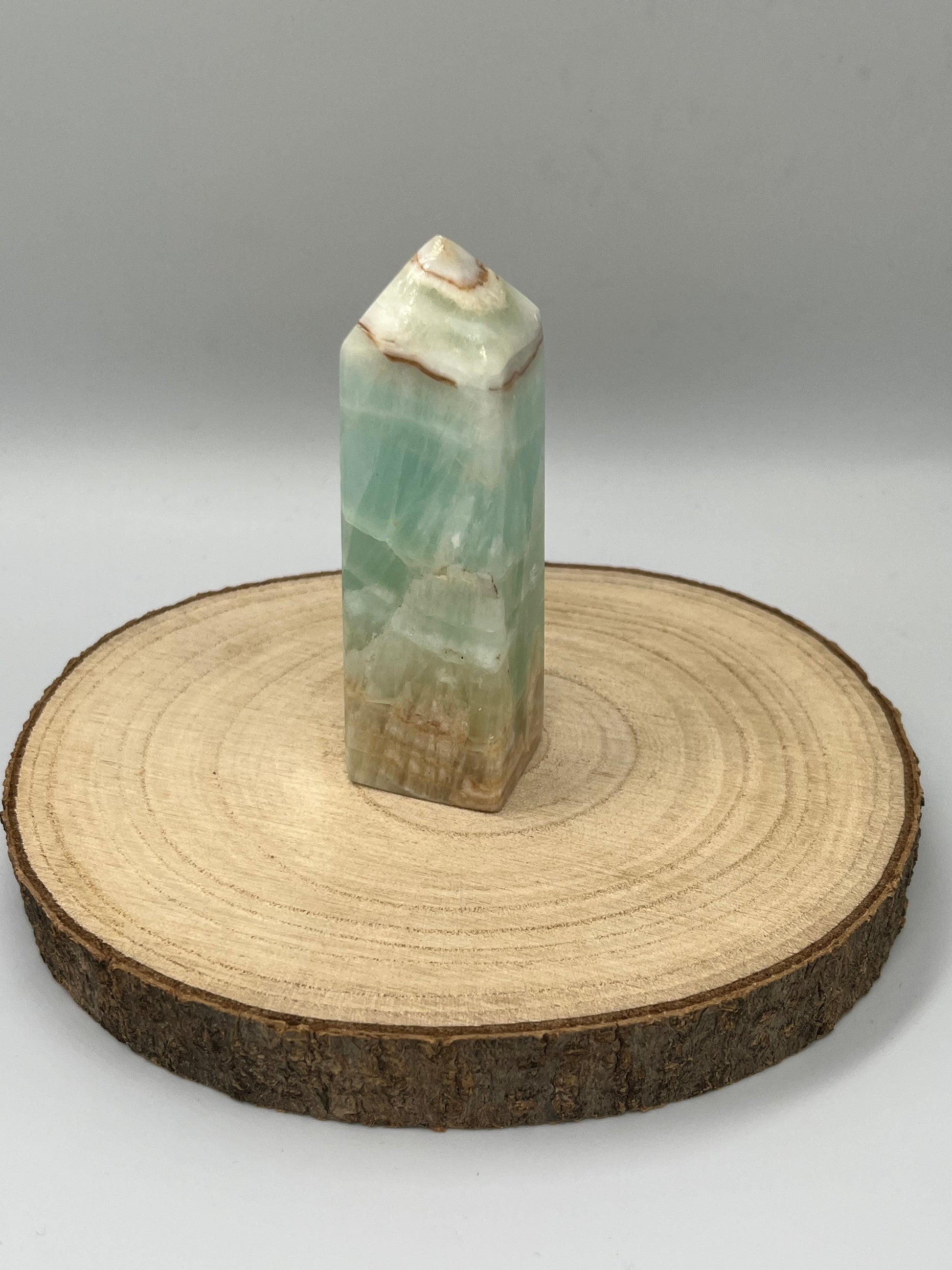 Wieża z kalcytu karaibskiego. Przepiękny turkusowo - miętowy odcień.