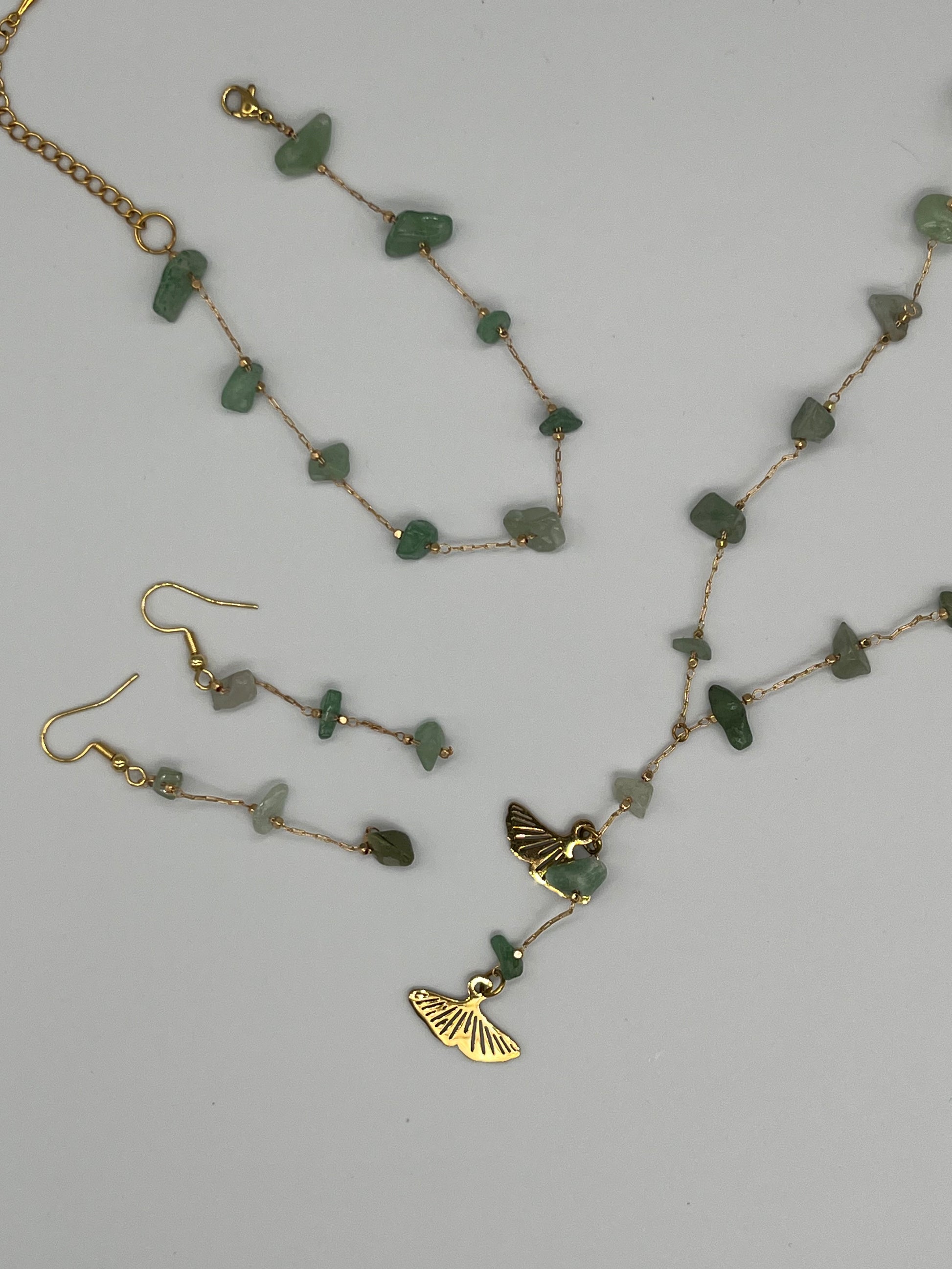 Komplet awenturyn naszyjnik + bransoletka + kolczyki
