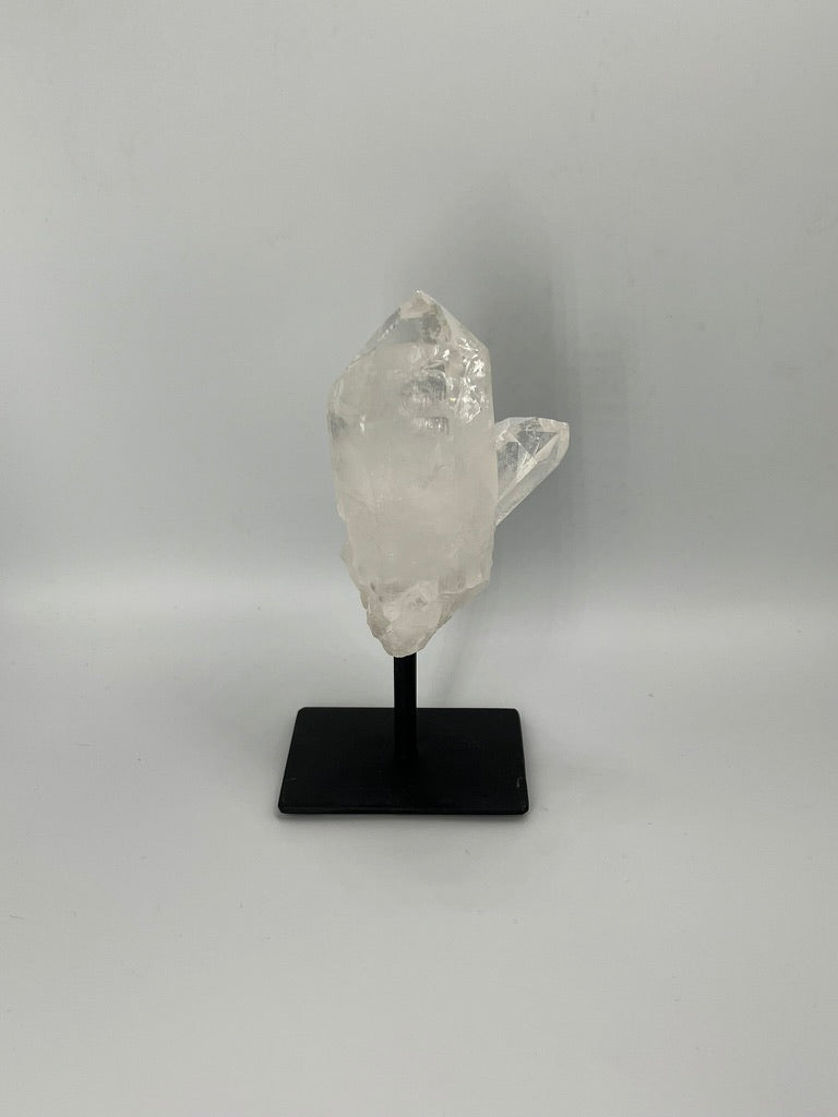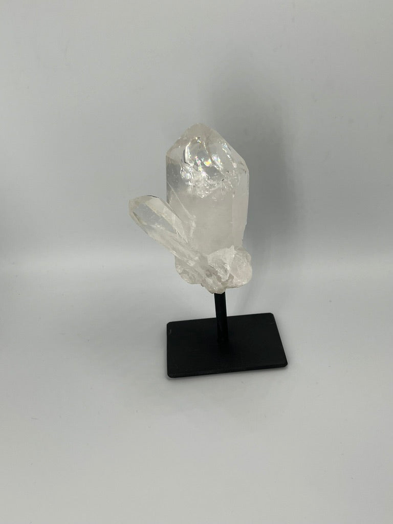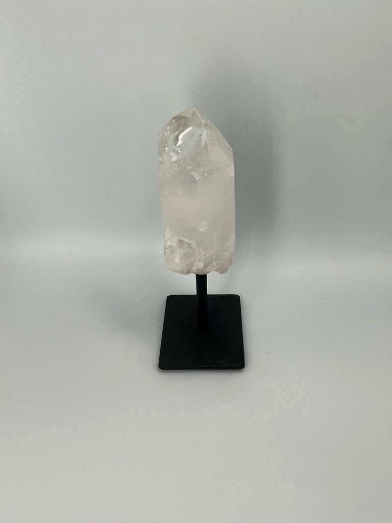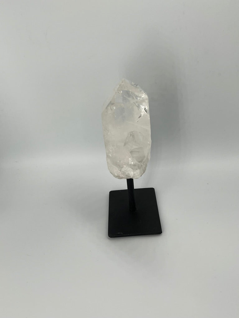 Kryształ górski na czarnym standzie – czystość, światło i harmonia w jednym. Subtelny akcent o potężnej energii 🤍