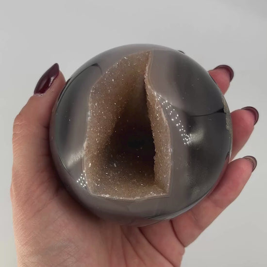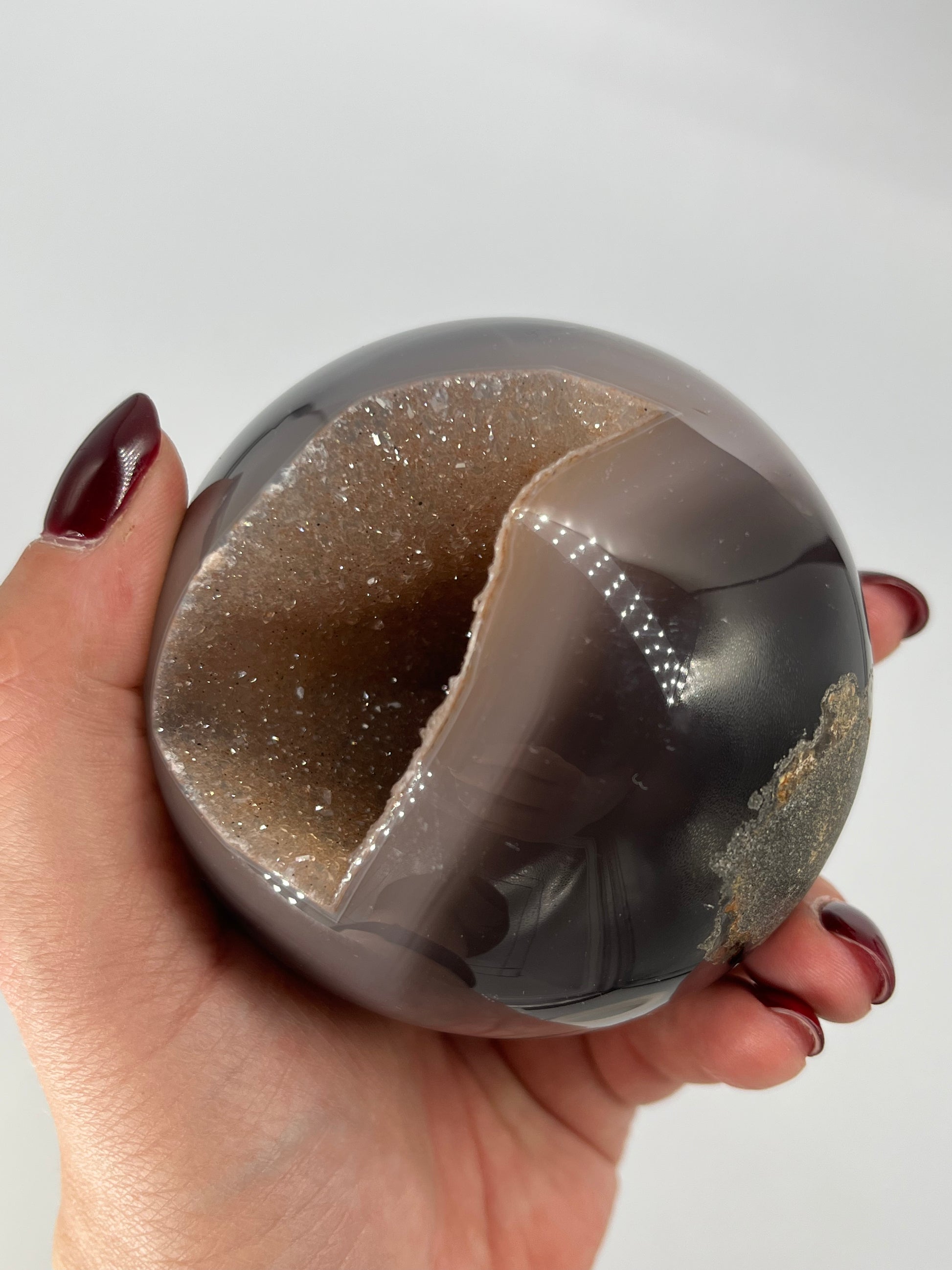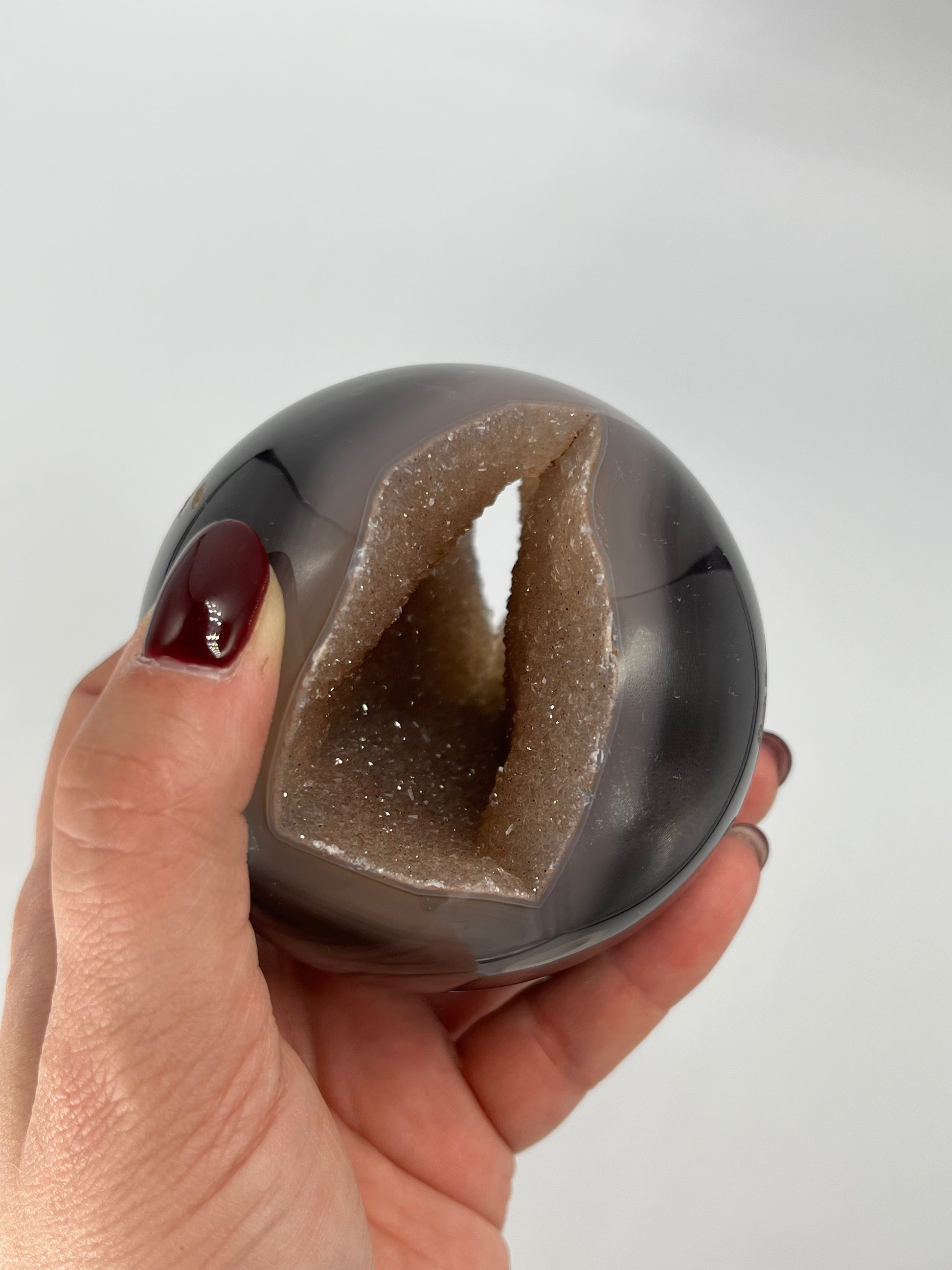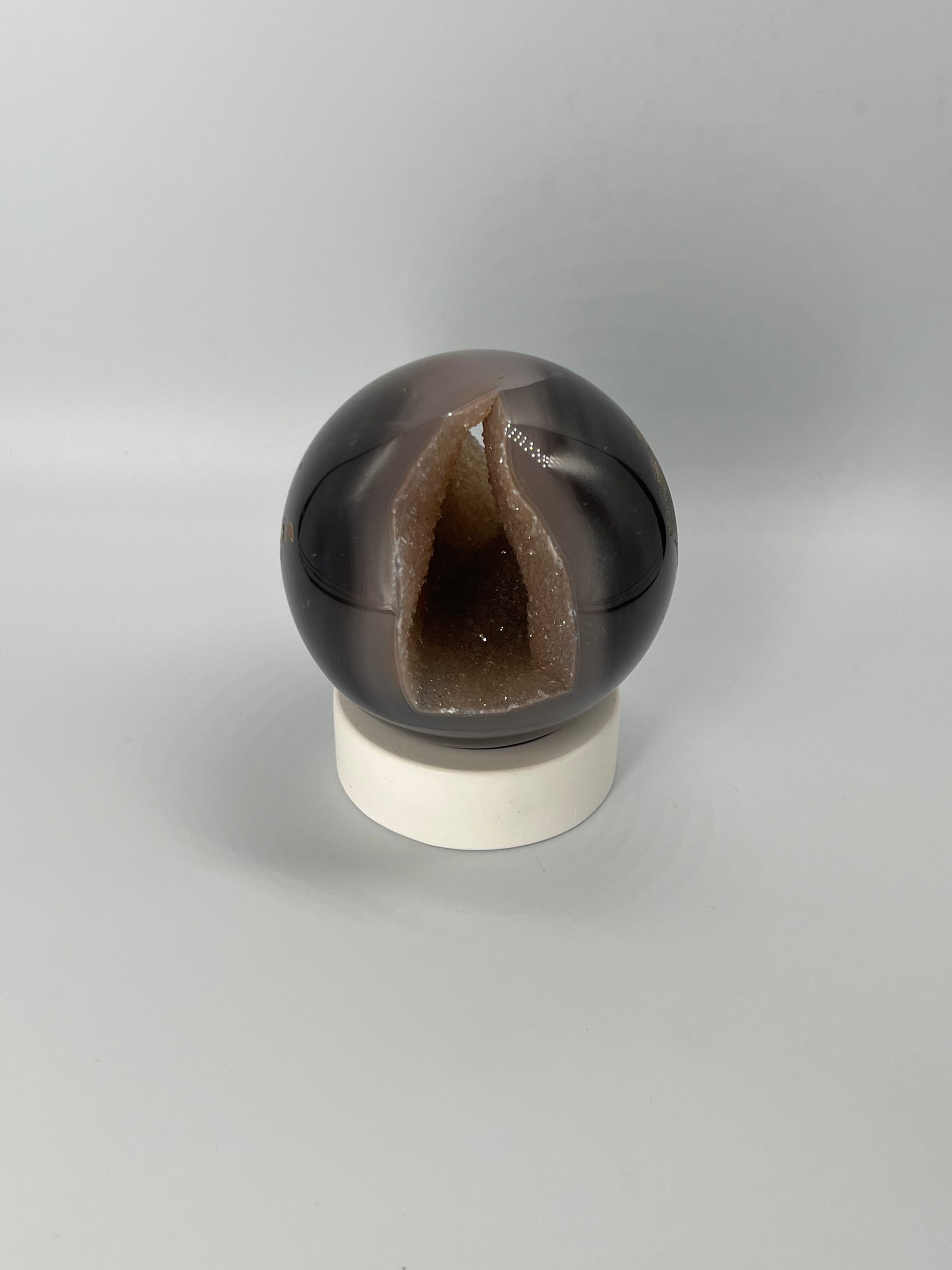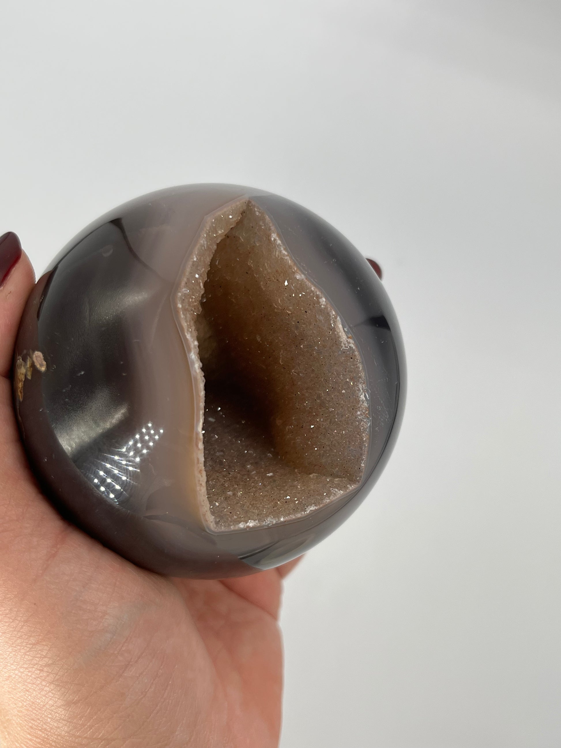 Kula z agatu w pięknym brązowym odcieniu. Z błyszczącą druzą, która mieni się jak drobinki złota. Elegancka, ciepła i pełna naturalnego uroku 🤎