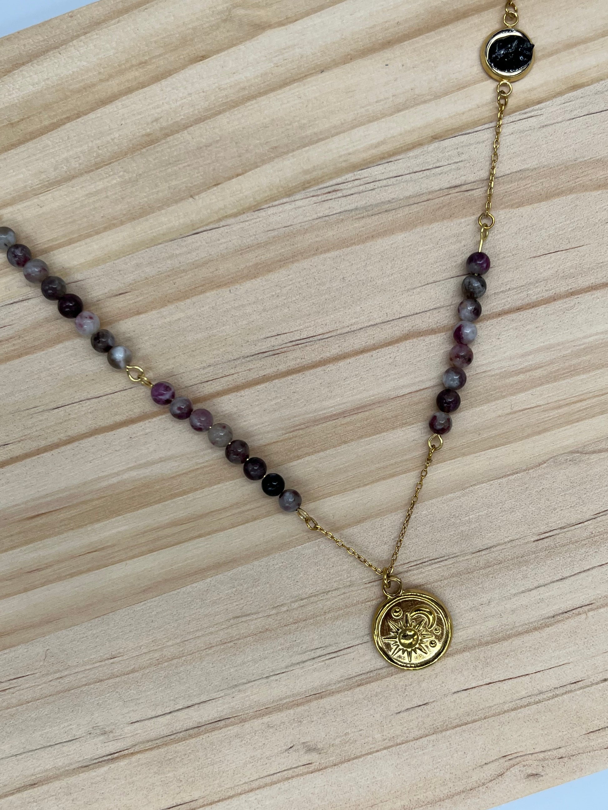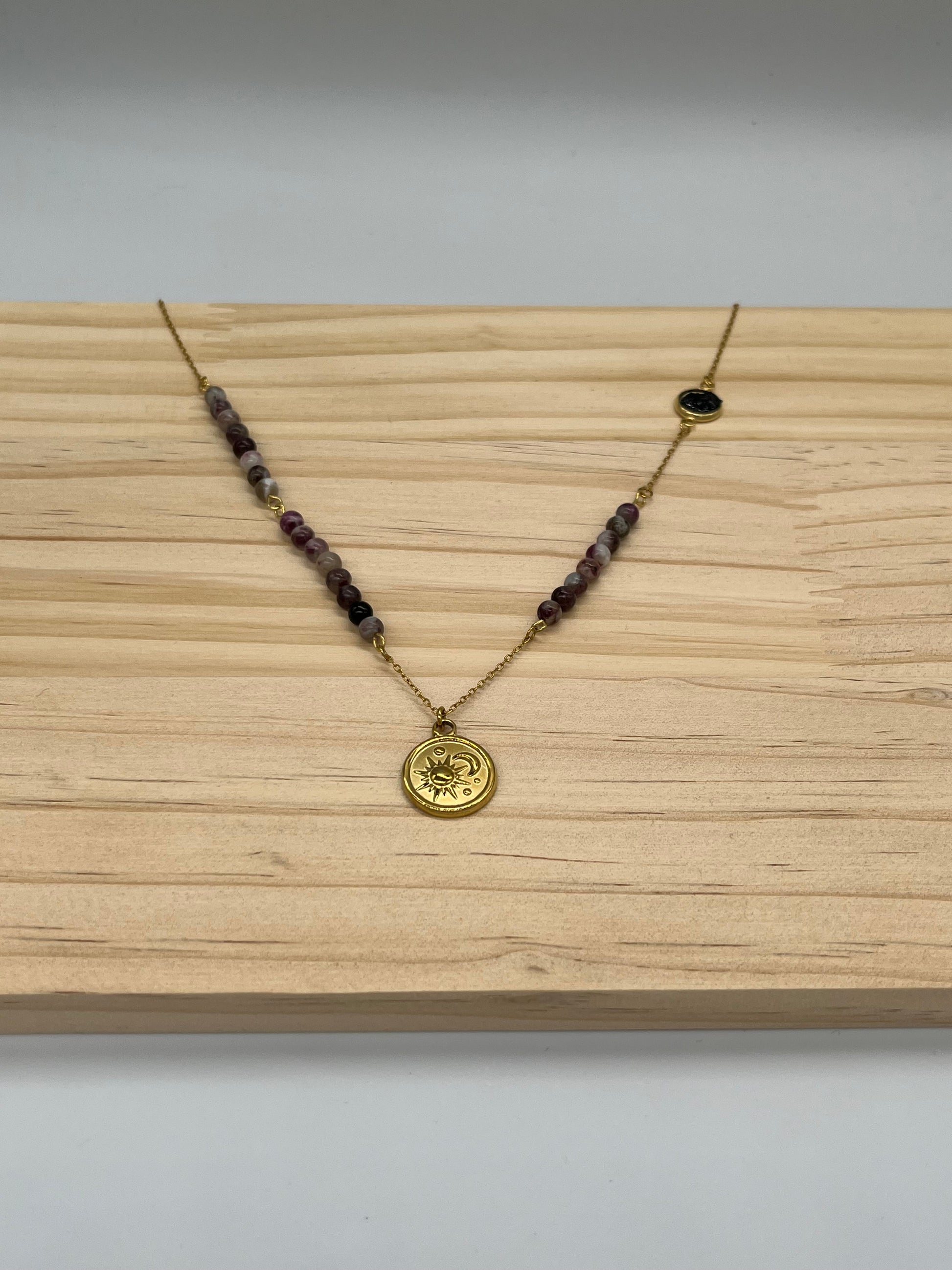 Naszyjnik Słońce i Księżyc z turmalinem śliwkowym