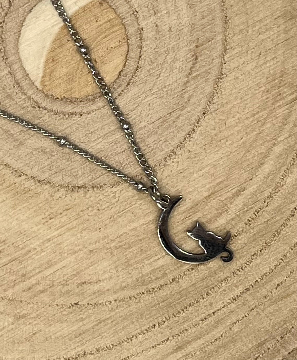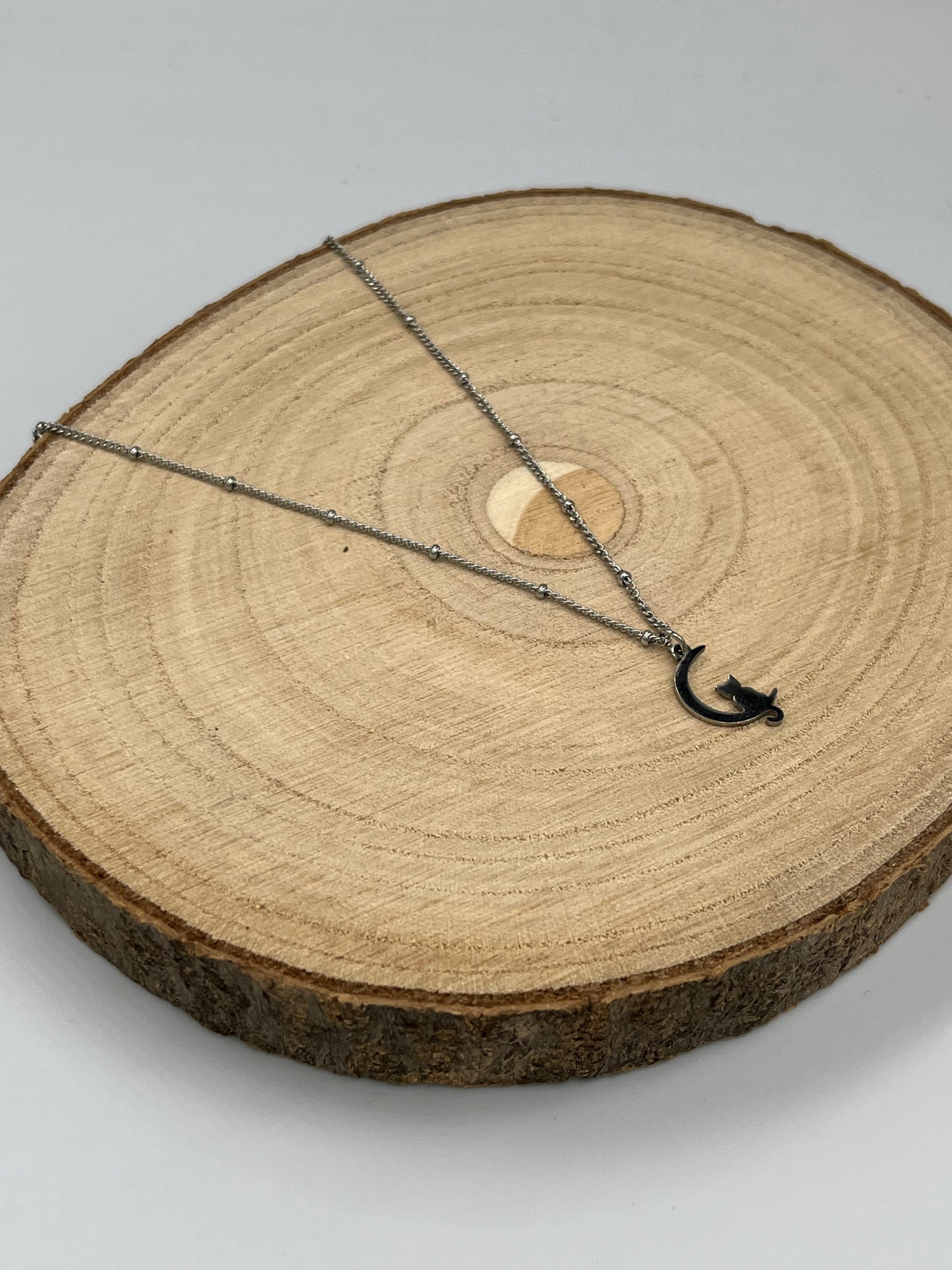 Prosty minimalistyczny naszyjnik z zawieszką, przedstawiającą kota na księżycu. Bo dlaczego nie? :)