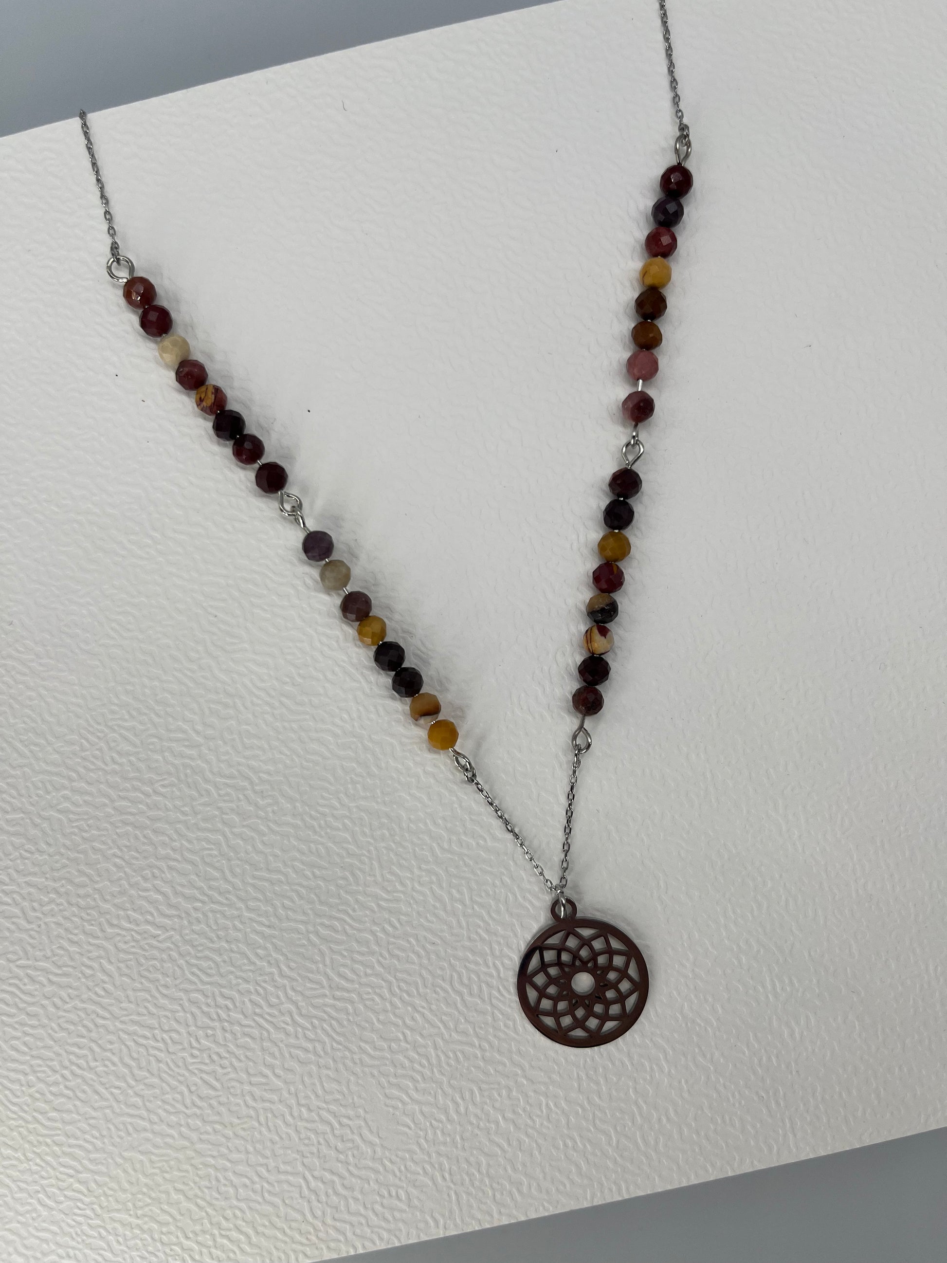 Naszyjnik z mandalą i mokaitem