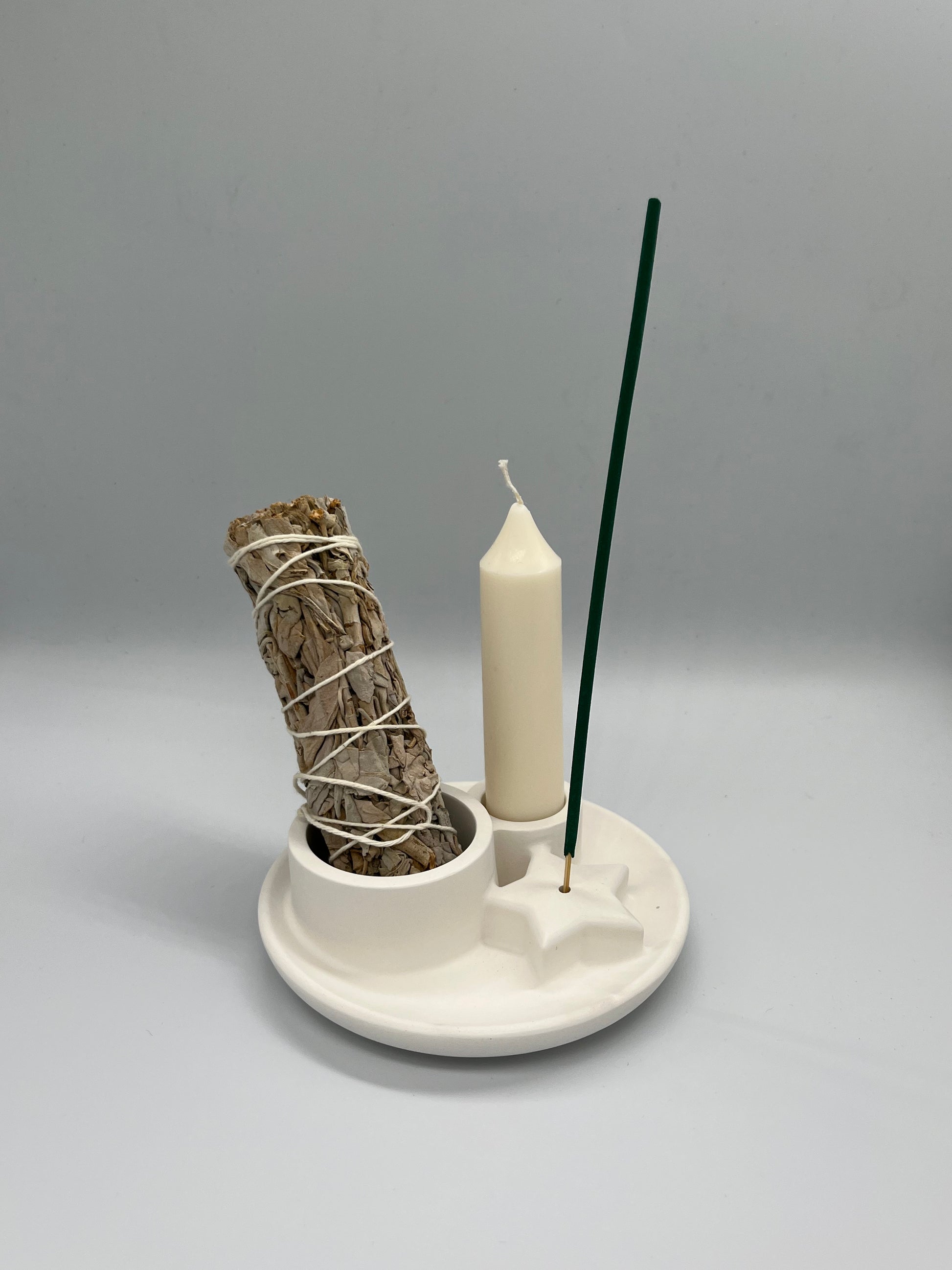 Podstawka na świece, kadzidełko, szałwię, palo santo. Aby podczas codziennych rytuałów zawsze panował porządek.