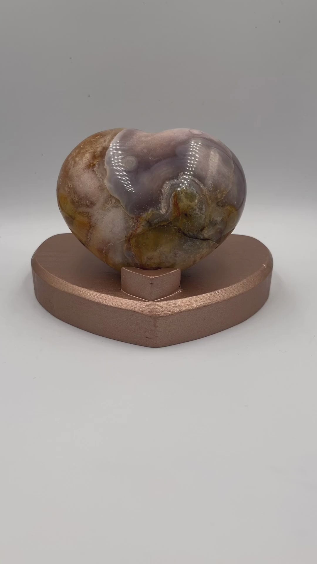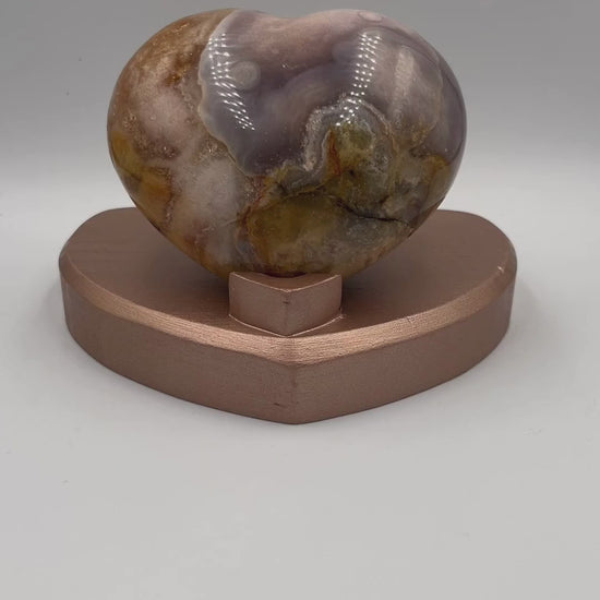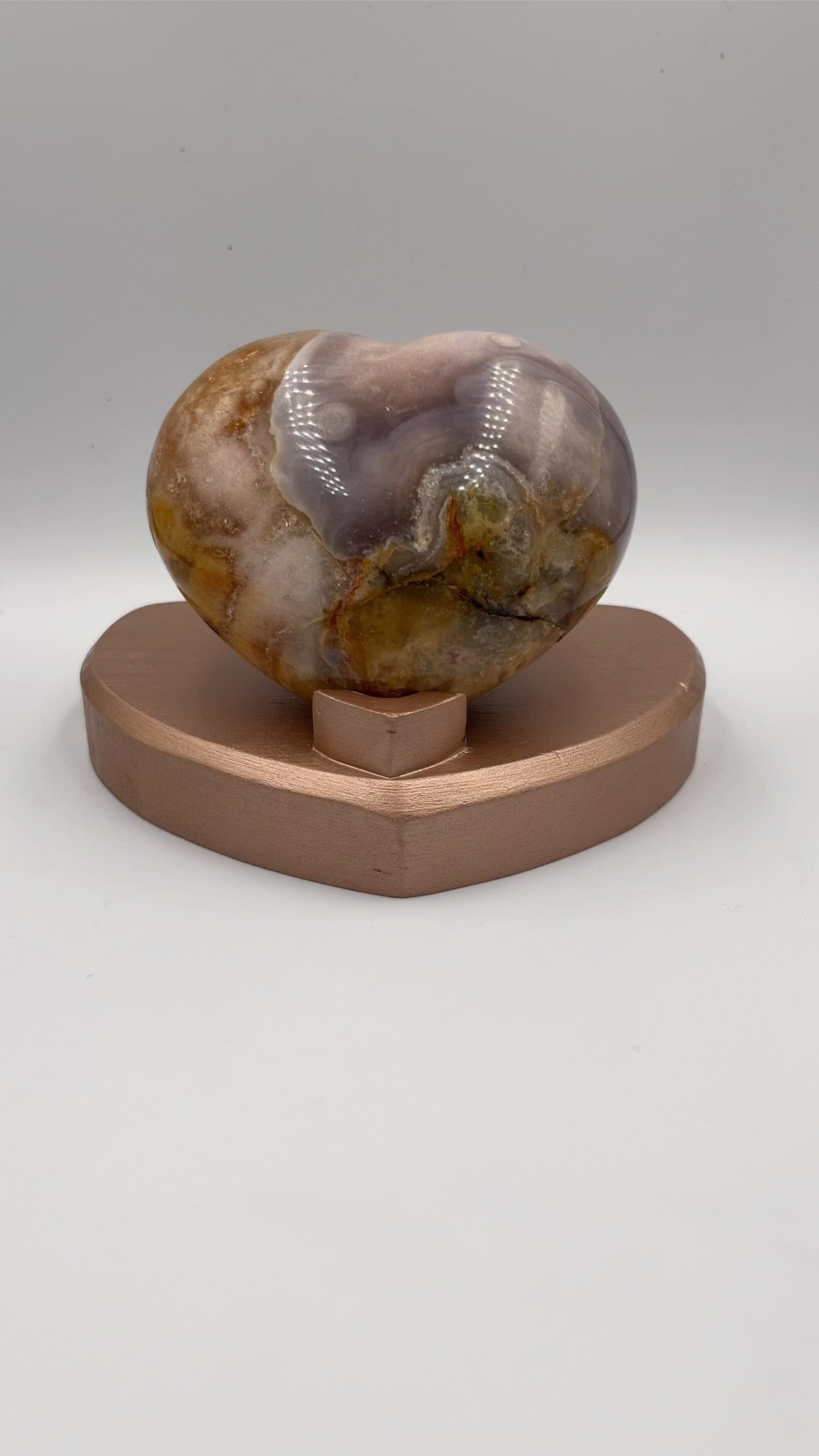 Serce z ametystu różowego na pięknej drewnianej podstawce, pomalowanej na kolor różowego złota. Idealne na prezent.