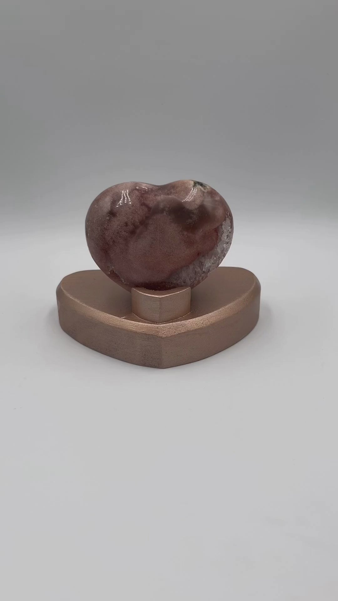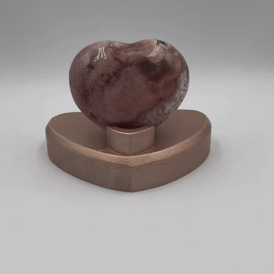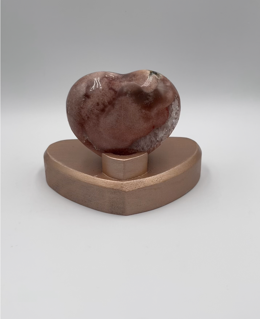 Urocze serce z różowego ametystu na podstawce w kolorze różowego złota – symbol czułości, wdzięku i wewnętrznego spokoju 🌸