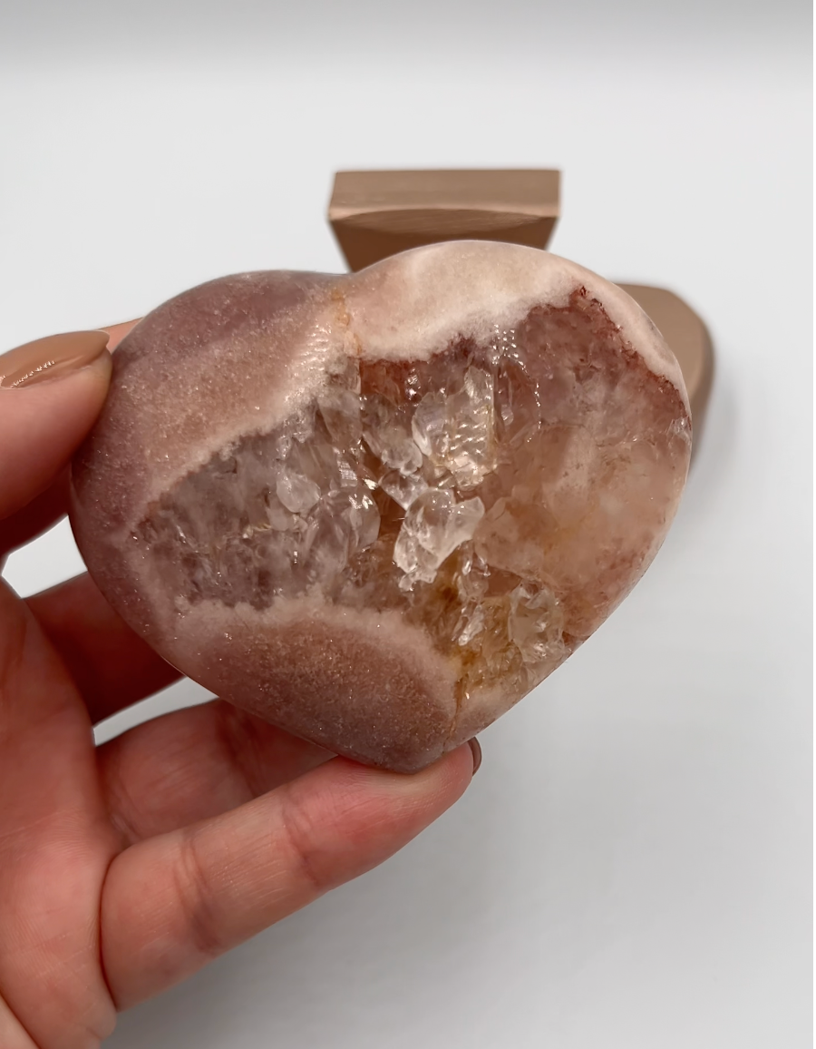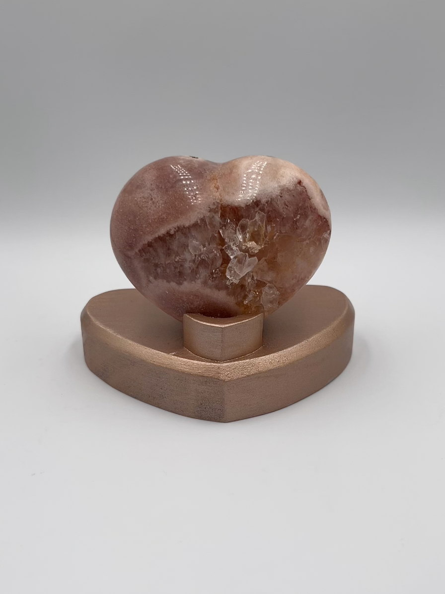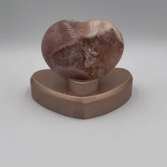Romantyczne serce z różowego ametystu na złotoróżowej podstawce – jak odrobina miłości zaklęta w kamieniu 💗