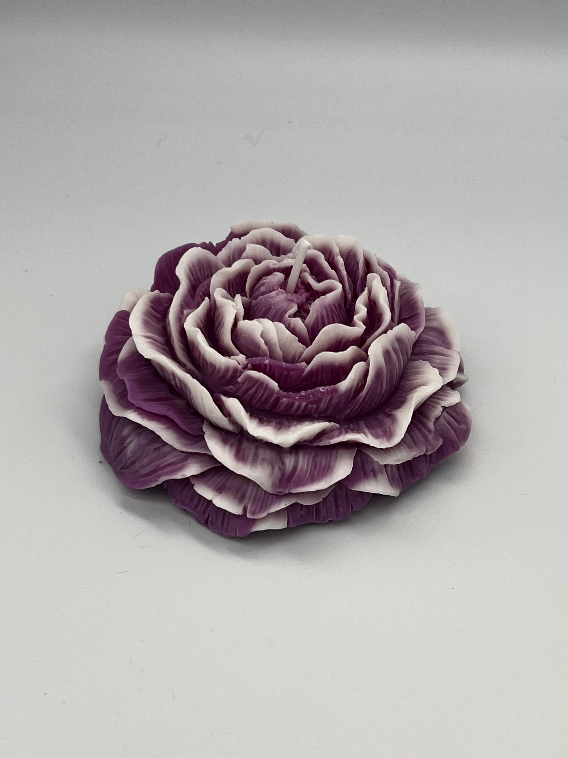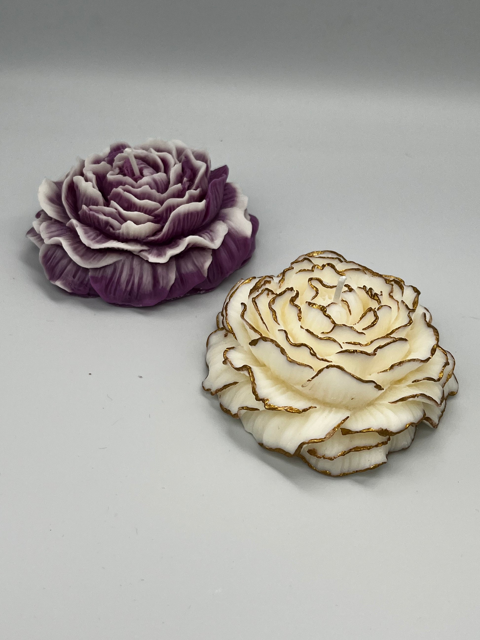 Świeca dekoracyjna w kształcie kwiatu piwonii. Sojowa. Bezzapachowa.